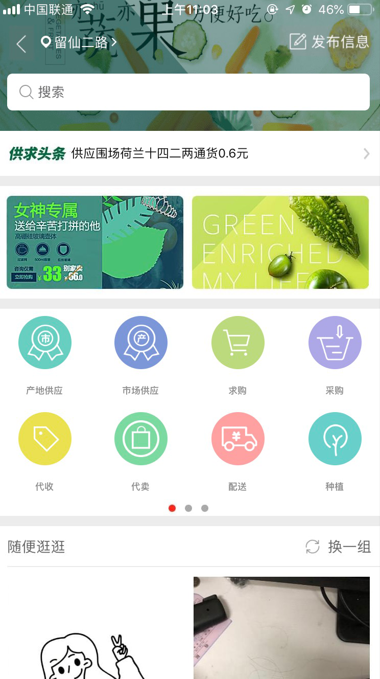產地供應、市場供應、代賣、求購、代收、採購、配送、種植、販運信息、產地價格、市場價格、天天特價、市場賣貨、貨運信息等,助力農副產品,縮短交易時間。