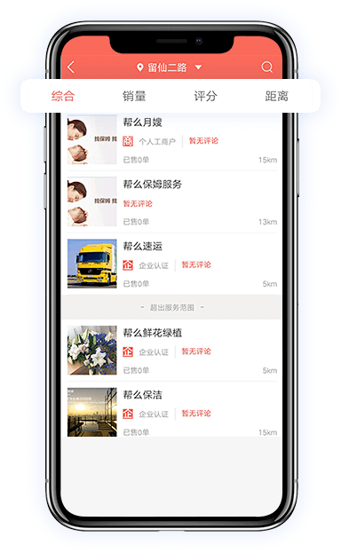 用戶可以根據商家列表、服務類型、價格、距離、銷