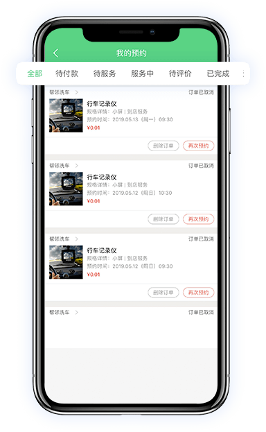 單、再次預約,對完成的訂單可以進行評價。